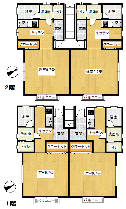 - 1階 64.51㎡ 2階 62.20㎡ 合計126.71㎡ /